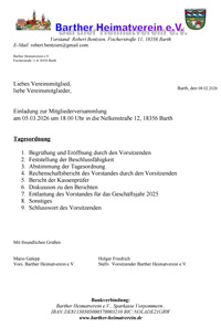 Am 29. März 2025trafen sich die Mitglieder des Barther Heimatvereines zur Jahreshauptversammlung. In dieser Versammlung musste turnusgemäß ein neuer Vorstand und die Kassenprüfer neu gewählt werden.