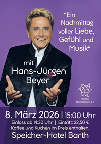 Wir, der Barther Heimatverein e.V. möchten mit Euch das neue Jahr am 25. Januar 2025 ab 14:00 Uhr begrüßen.